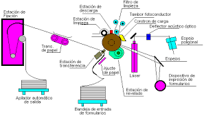 El mecanismo de las impresoras láser consta de un cilindro rotatorio, llamado tambor, cuyo cuerpo principal está compuesto por un material buen conductor de la electricidad, normalmente un metal, y está recubierto por una fina capa de material fotoconductor.